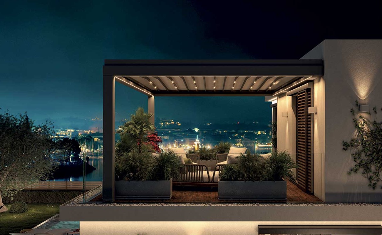 Bioclimatica a lamelle impacchettabili,